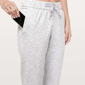 Lululemon On The Fly Pant / pants (size 8) Luxtreme, light grey, striped pattern