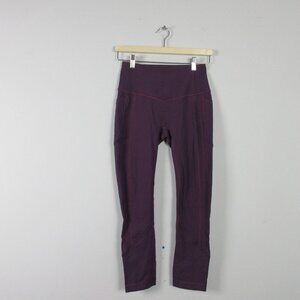 Lululemon On Your Mark Crop Leggings Women Size 6 Black Cherry Yoga Fitness 188