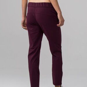 4 way stretch travel-friendly pants. 7/8 length. Relaxed fit. 28inch inseam. Medium rise. Dark Adobe colour.