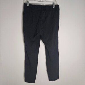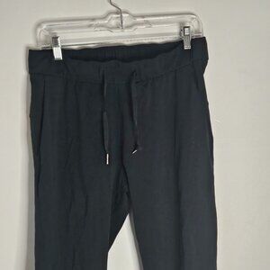 Four way stretch, travel friendly fabric. 28" inseam. Pockets. Smooth fabric. Drawstring waist. Medium rise. Minimal pilling between the thighs. Otherwise in great condition.