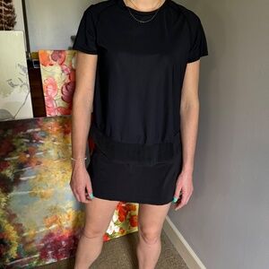 This black Lululemon open back shirt has mesh lining around the edges. It is a size 8, fits like a size 8.