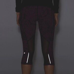 Lululemon Outrun 17" Crop Antique Paisley Deep Fuschia Black / Black size 8