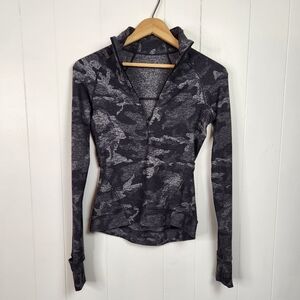 Lululemon Outrun the Elements 1/2 Zip Incognito Camo HTR Black Size 2 Hiking