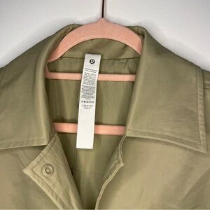 The ultimate blend of performance wear and street-style chic. This oversized coaches jacket from Lululemon features a relaxed silhouette in a versatile, muted olive hue. Lightweight yet durable, it's designed with both function and fashion in mind. Details include a classic pointed collar, snap front closure, discreet zippered interior pocket, and softly gathered cuffs. Whether you're heading to a morning class, running errands, or adding a sporty edge to your city look, this jacket's got your back.