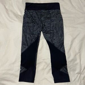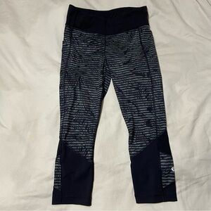 Size 6 Lululemon Pace Rival Crop *Full-On Luxtreme in EUC. Stripe Play Slate Black/Black colour.