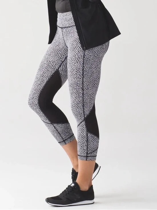 Very good condition Lululemon Pace Rival Crop in Scatter Star Arctic Grey Black / Black.