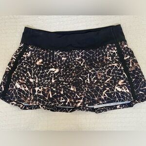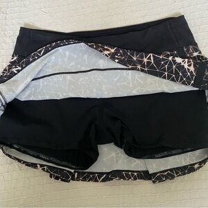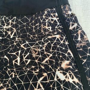 Lululemon athletic skirt with shorts. Black, white and gold greometric design.