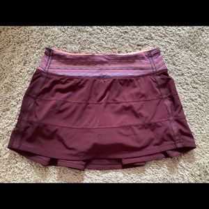 Lululemon Pace Rival Skirt in “bordeaux drama / space dye twist naval blue very light flare”.