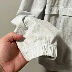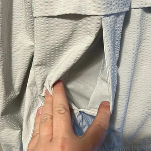 It transforms into a small backpack for easy, hands-free carrying. Textured cotton-blend fabric.