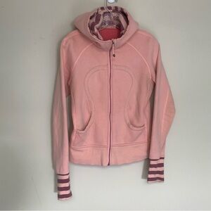 Lululemon Pink Scuba Zip Hoodie with Striped Cuffs and Hood 8