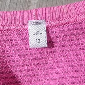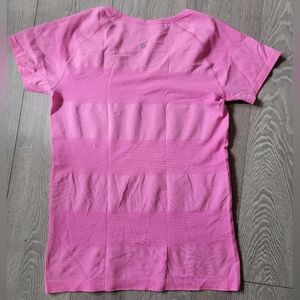 Lululemon pink v-neck stretch top. Lululemon size 12. Small snag on back as shown in pic, price reflects snag.