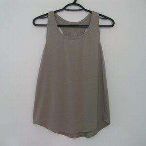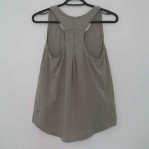 Lululemon Pleated Love tank colour Palm Court. The material is pima cotton. There is minor wash wear, no stains or other flaws. The tag is missing, please refer to measurements. Ptp 16", length 24".