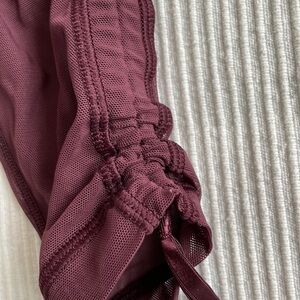These Lululemon Plum Patterned High Rise Mesh Tights are in very good, pre-owned condition. Mesh along the waist and ankles. Ruching with a drawstring at the ankles. Size 8 - please see pics for approximate measurements.