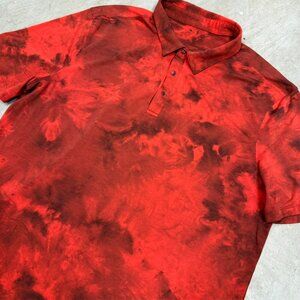 Lululemon Polo Shirt Stretch Short Sleeve Red Pattern Large