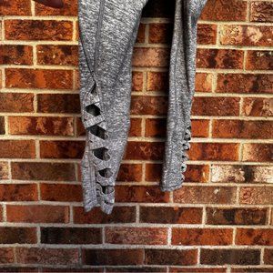 Lululemon Pure Practice Pant Heathered Slate Gray Leggings Lattice Trim EUC
