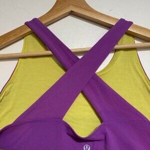 • Relevant Keywords Lululemon, Yoga Tank, Workout Top, Athleisure, Crisscross Back, X-Back, Open Back, Split Back, Petal Back, Built-in Bra, Two-Tone, Purple, Chartreuse