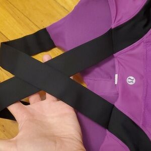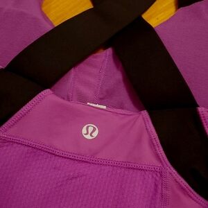 Lululemon Push Ur Limits Tank. Built in padded bra. Purple & black. Crossed back. Size 6, see pictures for measurements. Excellent condition. No stain, no rip. Non smoking house.