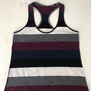 Lululemon Athletic Activewear Racer Back Stripped Top in Navy White Blue Black Gray Burgundy