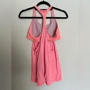 Stylish pink racerback athletic tank top. Perfect for workouts. Some signs of wear on the bottom back- a small hole and a couple of dark marks. Can’t notice unless up close!