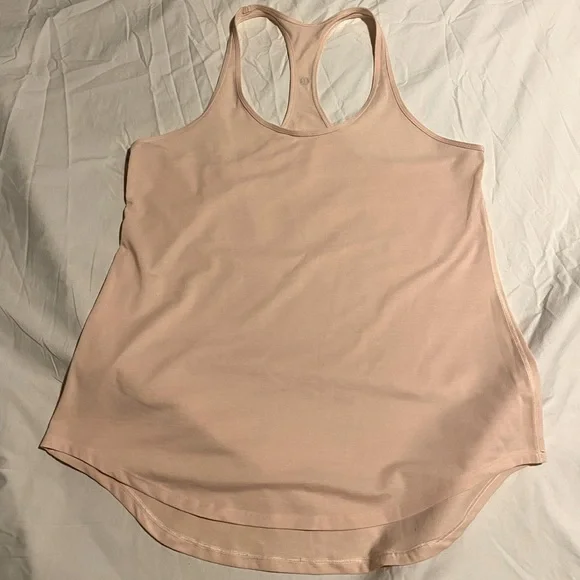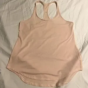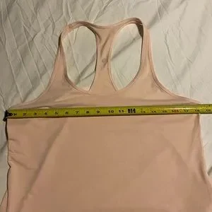 Light pink/peach Racerback tank top. Looser fitting. I believe it’s Pima cotton with stretch.