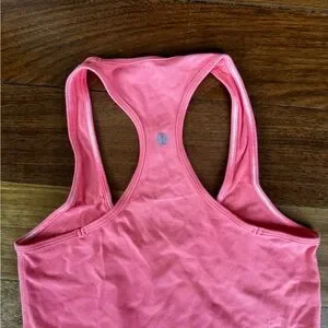 This Lululemon tank top is a coral pink color. The color is most accurate in the cover photo. It features a comfortable racerback design. Size is approximately 2 as the tag is gone, but it’s slightly smaller than a size 4 Lululemon shirt.