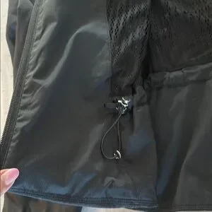 This black rain jacket is designed for maximum comfort with breathable sections under the arms and on the back neck.