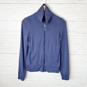 Solid side has pockets, ribbed cuffs, collar and shoulder insets