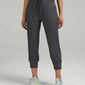 Stay cozy and stylish in these Lululemon Ready to Rulu High-Rise Cropped Joggers in a unique Weathered Green/Black shade. Made from Lululemon’s ultra-soft Rulu™ fabric, these joggers are perfect for lounging, traveling, or everyday casual wear.