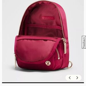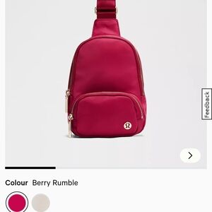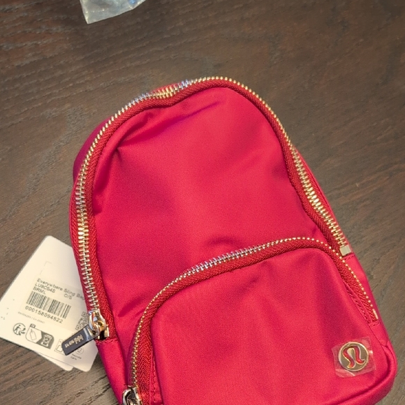 Stylish deep pink (Berry Rumble) Lululemon Sling bag with gold zippers/accents. Perfect for essentials and on the go. Brand new, with tags. Never been used and still in packaging. Discontinued color.