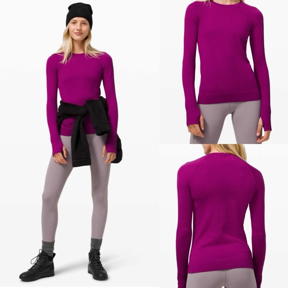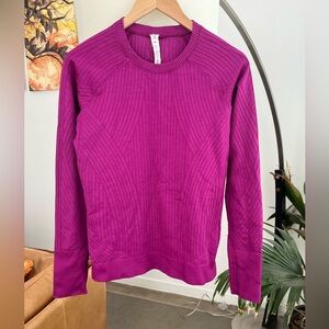 Excellent condition Lululemon Rest Less Pullover in aerial current deep fuschia / highlight purple