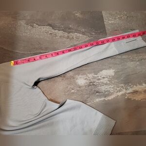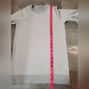 Lululemon Rest Less Pullover. Long sleeves. Diagonal ribbed. Grey and white; Color/patternis called "Diagonal Rib Silver Drop / White". Size 4 (1 bar as seen on picture), see pictures for measurements. Excellent condition. No stain, no rip. Non smoking house.