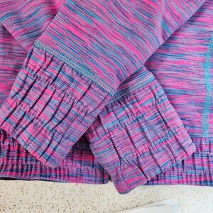 Lululemon Reversible Jacket with Ponytail Hole & Thumbholes. Brilliant Blue & pink one side, and black with blue zip and pocket linings other side. Zipper is fully reversible. One of the Ivivva line they discontinued in 2017, so this predates that, estimated to be 2014-2016. Youth or small female Jacket for moving. Rouged back, ponytail slot in hoodie, and thumb holes. Very smart design. Quality fabric, not light. Great to excellent preloved condition, as I found no defects. Pink and blue side features zip pockets also. Black side has regular jacket pockets.15 inches Pit to Pit, flat, without any stretch applied. Fabric has great stretch to it. Size XS to Small aprox ladies or Small to medium young adult.