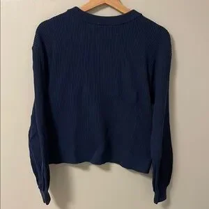 Stylish navy ribbed sweater. Perfect for any occasion.