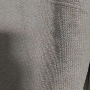 Four-way stretch cotton-blend fabric is textured on the outside and soft on the inside