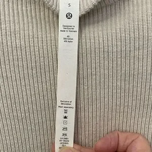 Stylish lululemon ribbed knit sweater. Perfect for layering. In excellent condition no pulls or stains. Size small, 55% cotton. Always hung to dry.