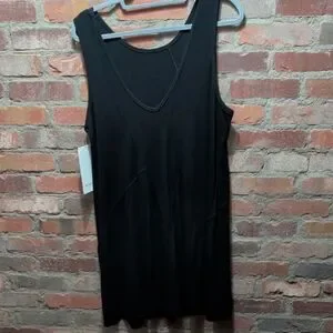 Black Lululemon dress. high neck with v-back. Go with the flow stretchy ribbed dress. PTP 21 " flat, does stretch.