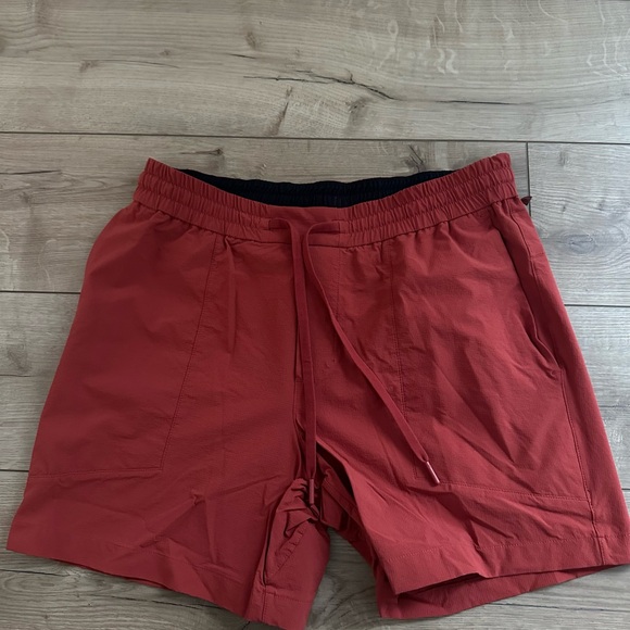 Comfortable red casual shorts with an elastic waistband and drawstring. Size Large.