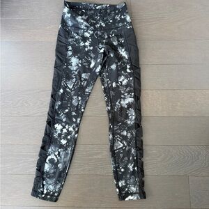 Stylish and comfortable women's leggings featuring a black and gray pattern. Perfect for workouts or casual wear. Size 6. Dusk Dye White Black / Black. In good condition