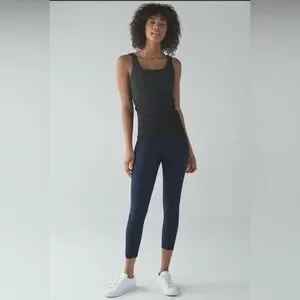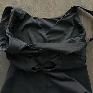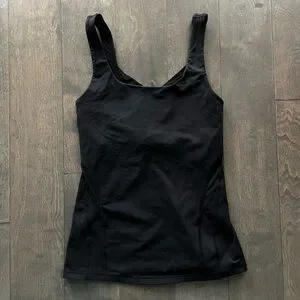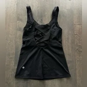 Black Lululemon Rise and Flow Tank Size 2. Beautiful fitting everyday black tank with mesh detailing across back and along little slits on the sides (shown in 9th pic)