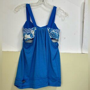 Lululemon Run Back On Track Tank Bra Floral Stretch Adjustable Hem Loose