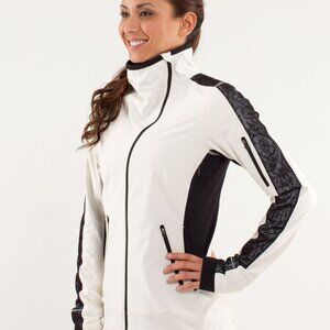 Lululemon Run: Draft Dodger Jacket in Cream/Black with Lace Accents (Size 8)