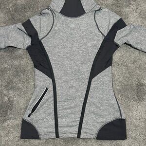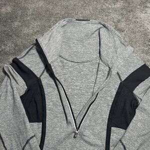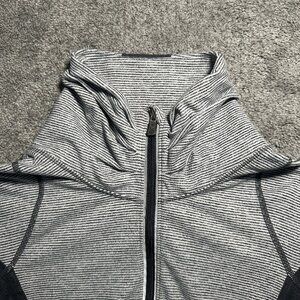 Lululemon Run Inspire 1/2 Half Zip Womens Size 6 Gray Black Striped Athleisure
