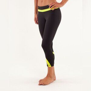 Lululemon Run Inspire Crop II Size 6 Women's Black/Yellow W6830S Style Number