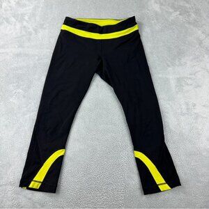 Lululemon Run Inspire Crop II Size 6 Women's Black/Yellow W6830S Style Number in good pre owned condition as shown in the photos with no flaws.