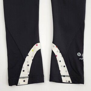 Lululemon Run Inspire Seawheeze 2012 Crop Black White Polka Dots Reflective Sz 4
