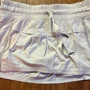 Stay comfortable and stylish with this Lululemon skort. Perfect for workouts or casual wear. Excellent condition, except for a small hole in the seam of the shorts. Cannot see, as there is a skirt overtop. Super cute!