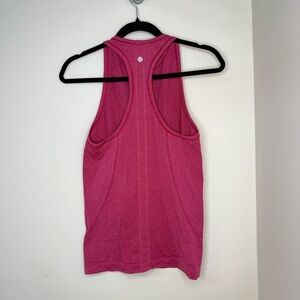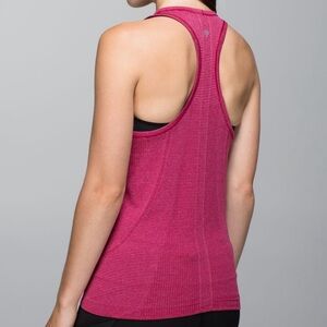 Gently used Lululemon Run Swiftly Tech tank top in a beautiful and vibrant purple, called Tonka Stripe Heathered Bumble Berry / Bumble Berry.