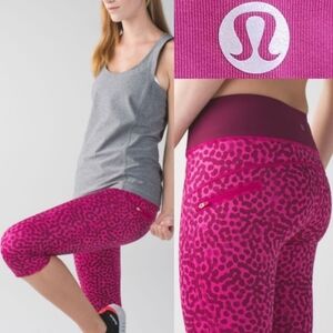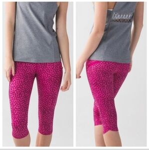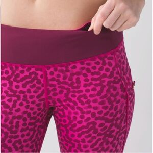 Lululemon Run Top Speed Crop Legging Ace Spot Jewelled Magenta Luxtreme Size 6