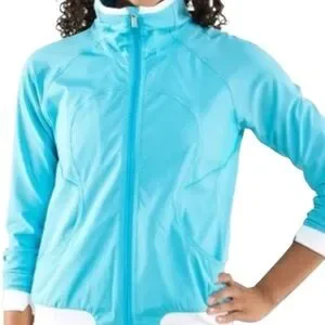 Lululemon Run Track Attack Jacket. Colour is Spry Blue white . Very good pre loved condition.