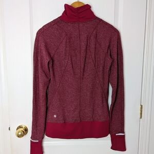 Stay warm and stylish in this Lululemon Runderful ½ Zip pullover — a rare and highly sought-after colorway: Mini Check Pique Bordeaux Drama Heathered Berry Rumble.
